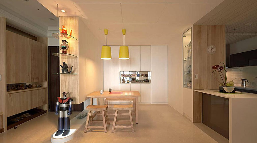 • 以北歐風格的生活質感為基礎,挹注大量木質紋理的溫暖,搭配上明亮色彩的燈飾、沙發點綴,簡約又不失活力與朝氣。而為了能展示屋主多年收藏的玩具、公仔,設計師也在各空間中打造醒目的開放式平臺,讓居住者喜愛的事物,能夠成為生活上的一大焦點。